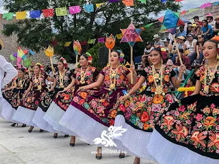 Fue después de las 13 horas cuando se dio comienzo con la presentación de las diversas comunidades que mostraron en la explanada del mercado de artesanías en pleno corazón de Mitla con la muestra de su cultura. San Blas Atempa, Santo Domingo Tehuantepec, Tlacolula de Matamoros, Chinas Oaxaqueñas de Genoveva Medina, el Jarabe Mixteco de Huajuapan de León, la danza de la pluma de San Jerónimo Tlacochahuaya, el fandango de Santa Cruz Xoxocotlán y por supuesto, la boda mitleña de San Pablo Villa de Mitla fueron las delegaciones que se presentaron y a las que se sumaron grupos folklóricos infantiles y juveniles.